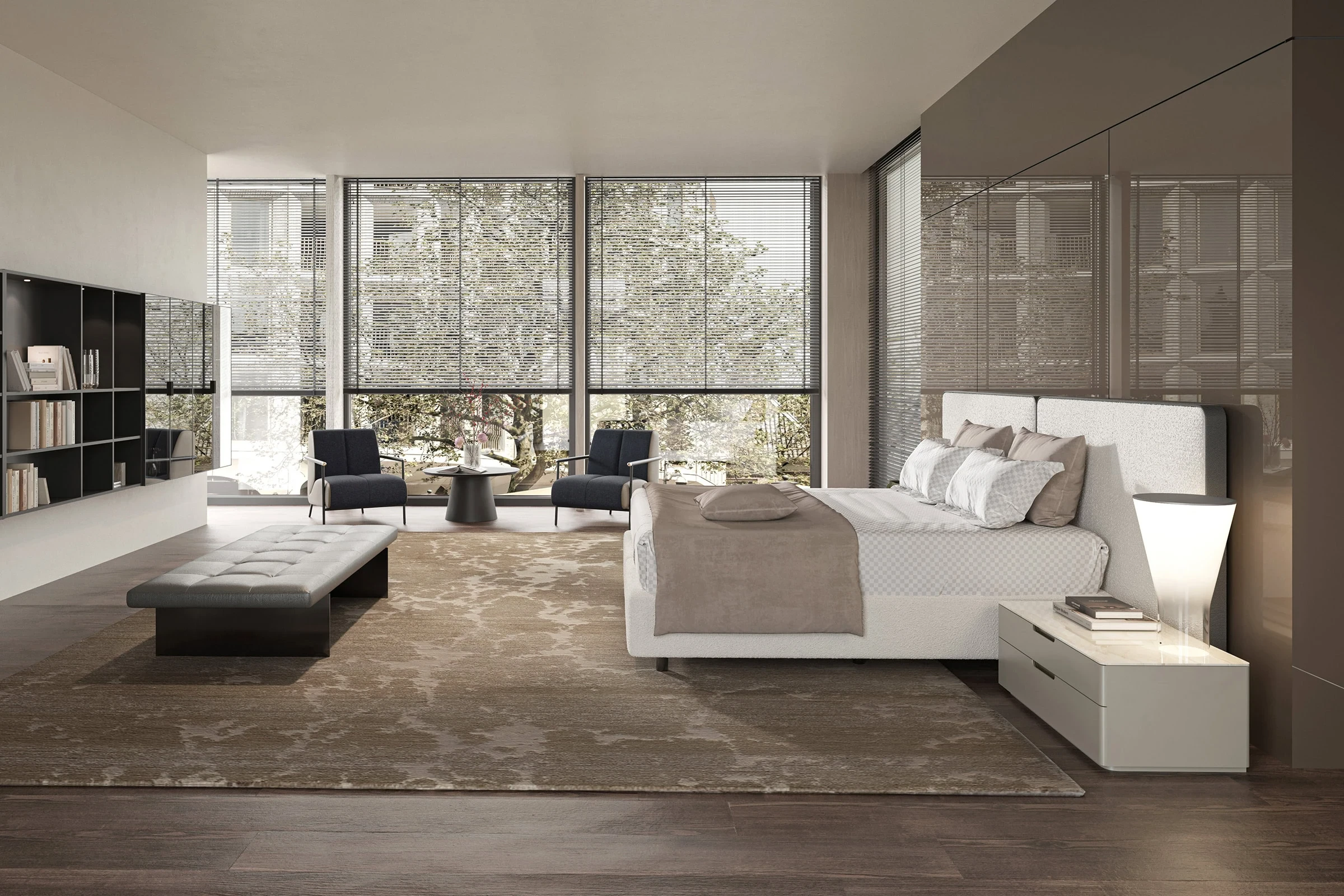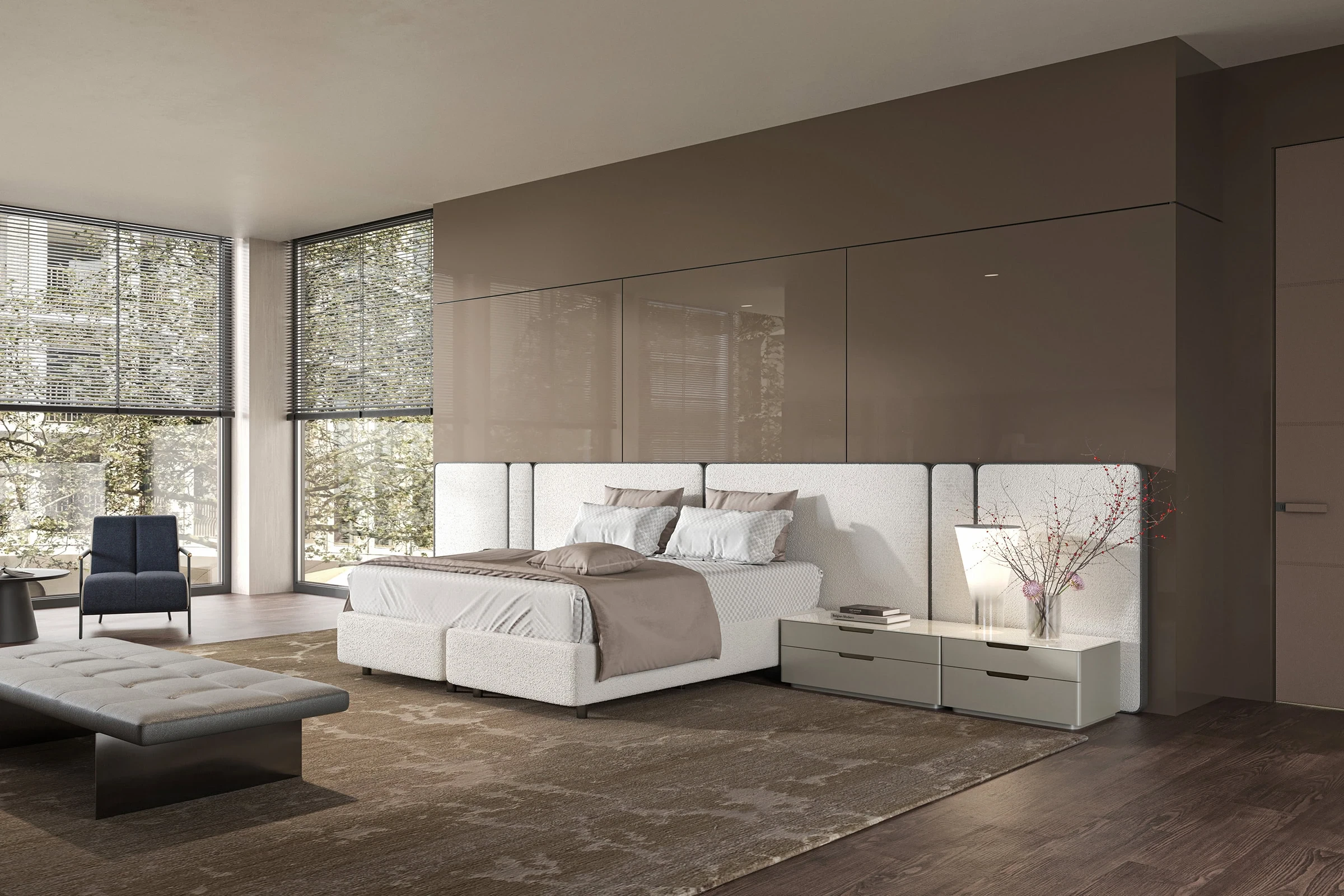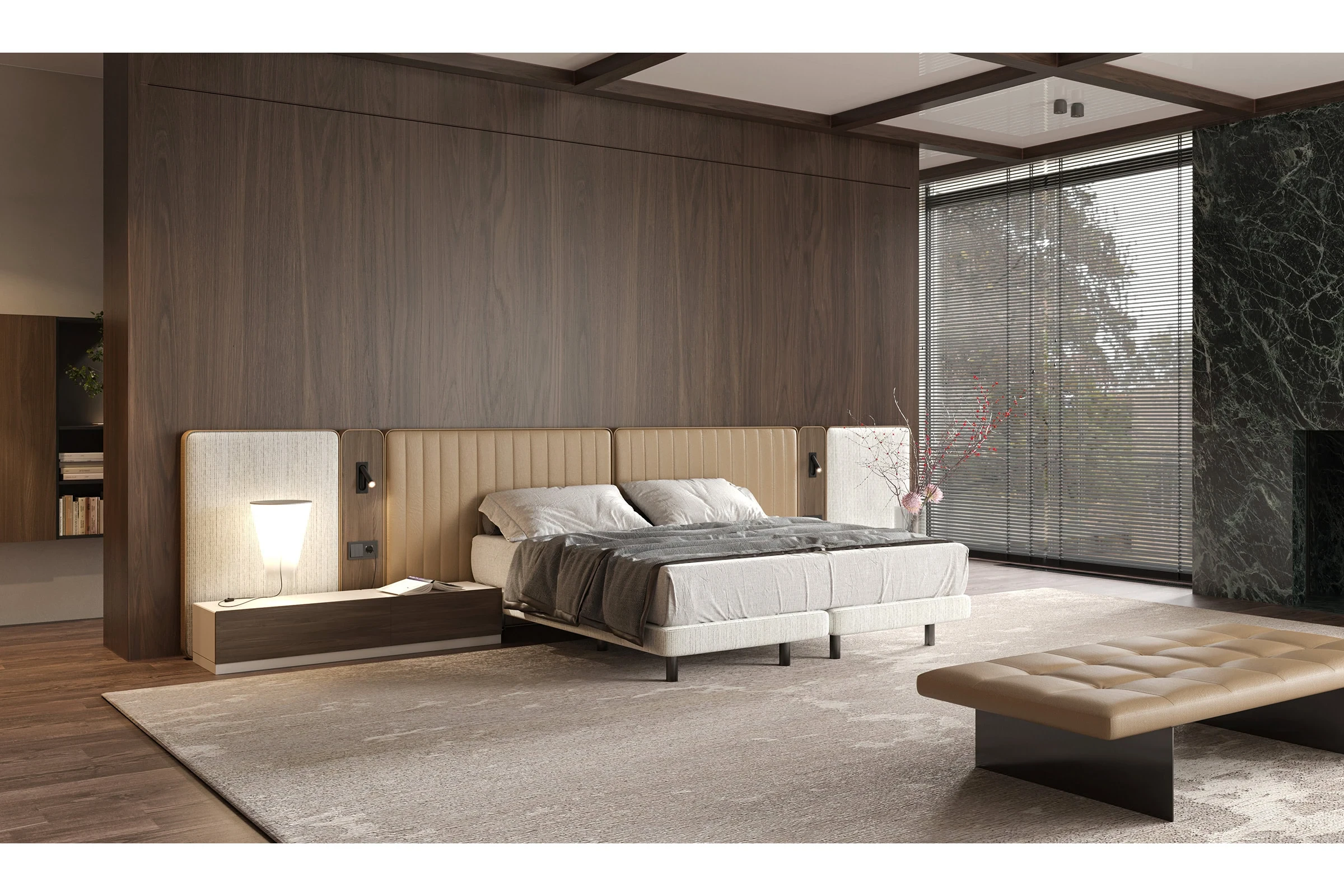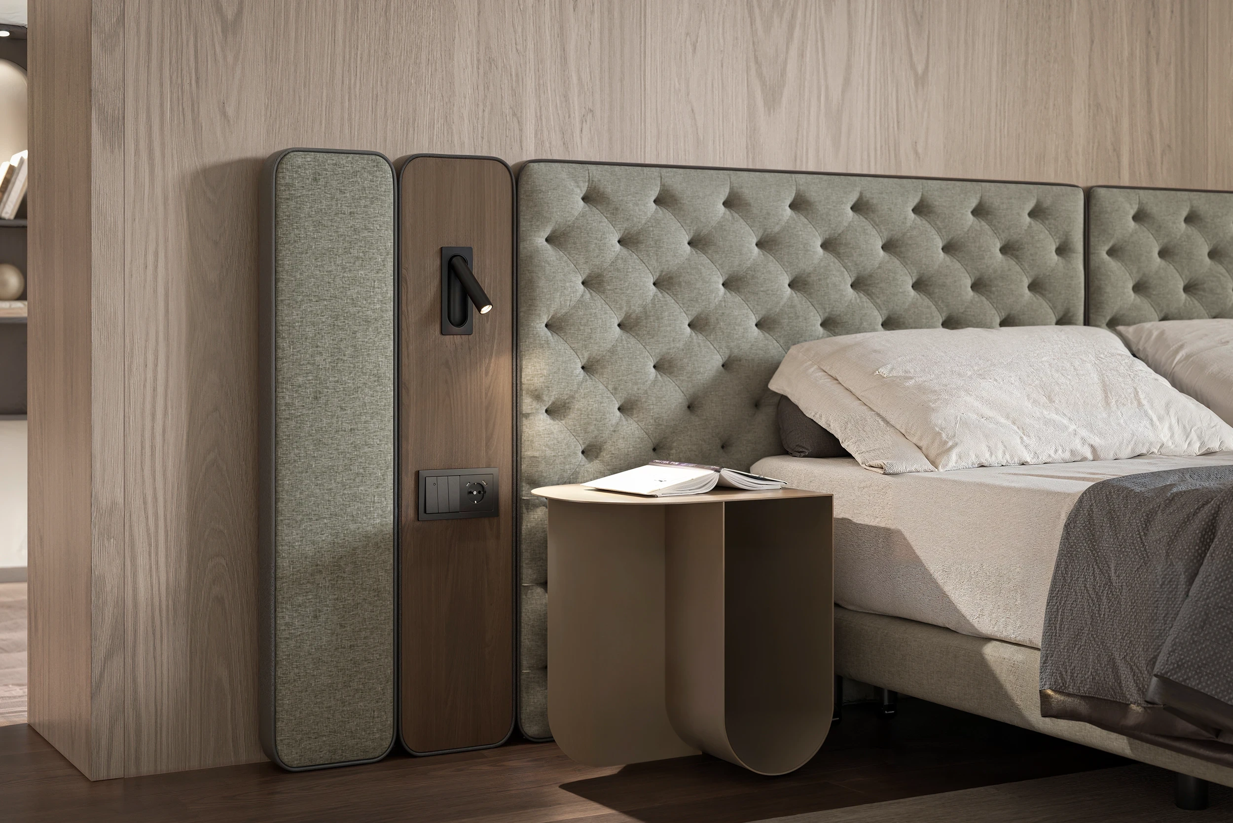 Üründe baza ve bazasız seçenekler de sunulmaktadır. Modüler ve çeşitlendirilebilir başlık sistemi sayesinde kullanıcı, kendi ihtiyaçlarına ve estetik zevklerine uygun ürünü kolaylıkla seçebilir. Ürünün modüler başlıklarındaki priz ve aydınlatma elemanları, ürünü kullanıcı için daha işlevsel hâle getirir. Genel tasarıma baktığımızda sade ve zamansız çizgiler kullanılmıştır.