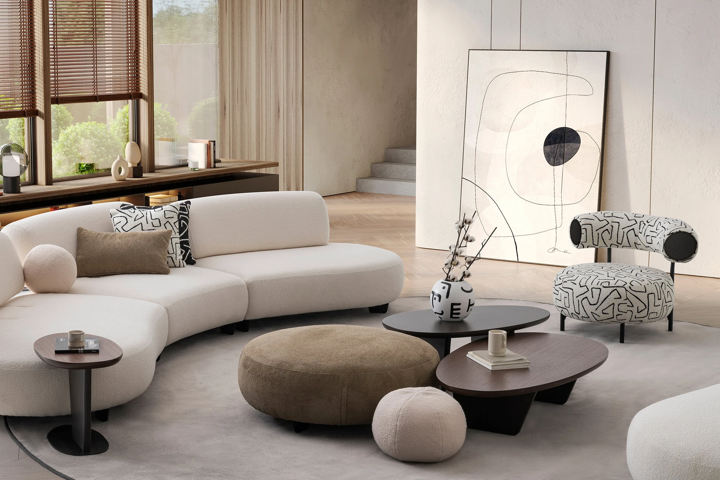 Barcelona Orta ve Yan Sehpa Takımı, modern tasarımı ve doğal malzemelerin uyumuyla yaşam alanlarınıza stil ve fonksiyonellik katıyor. Modüler yapısıyla farklı boyut seçenekleri sunan bu takım, büyük ve küçük orta sehpa ile yan sehpadan oluşuyor. Ayaklarda ve bazı üst tablalarda kullanılan kırmızı kahverengi boyalı MDF malzeme tasarıma zarif bir sıcaklık katarken, diğer tablalar Aral dokusuyla doğal bir estetik sunuyor.