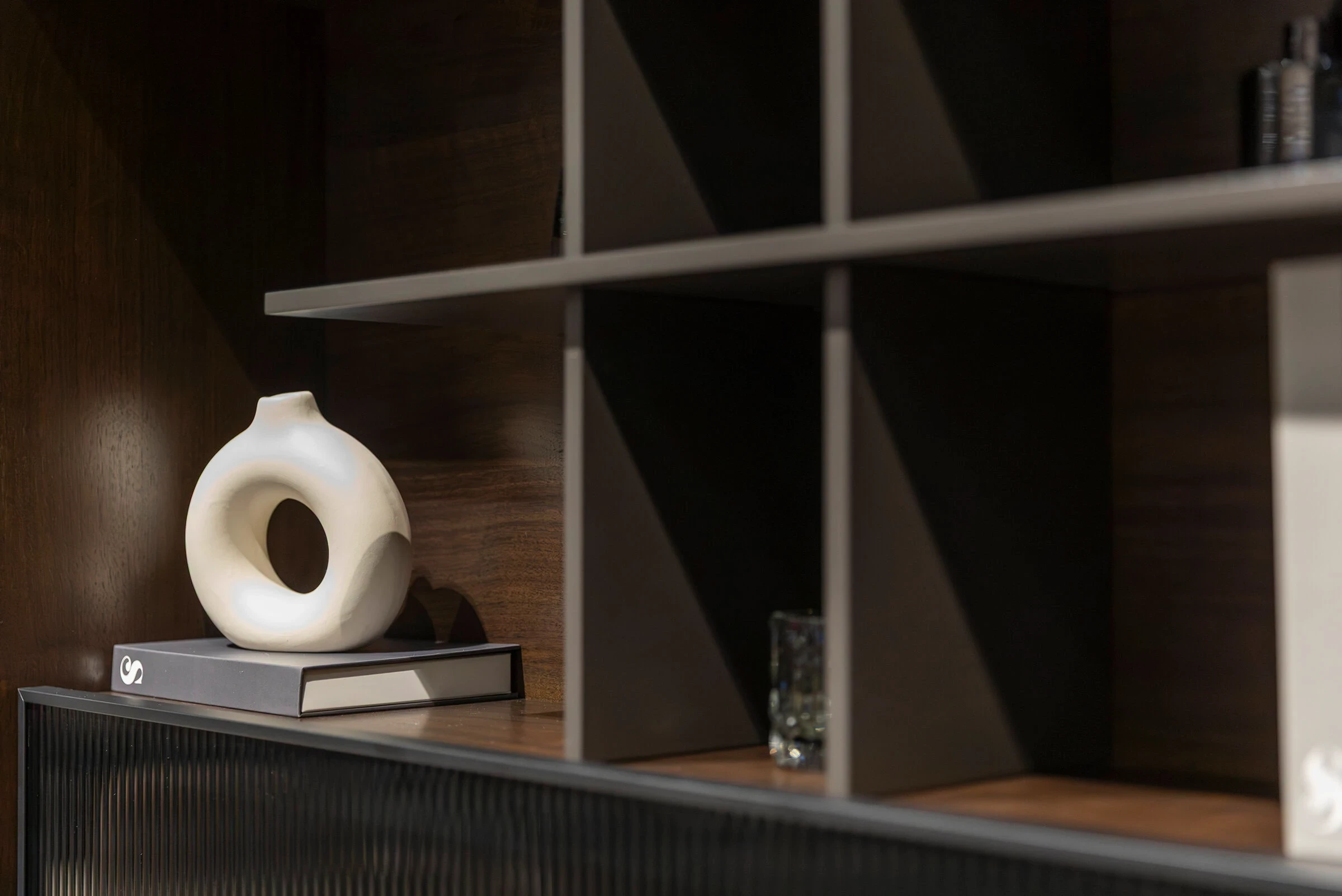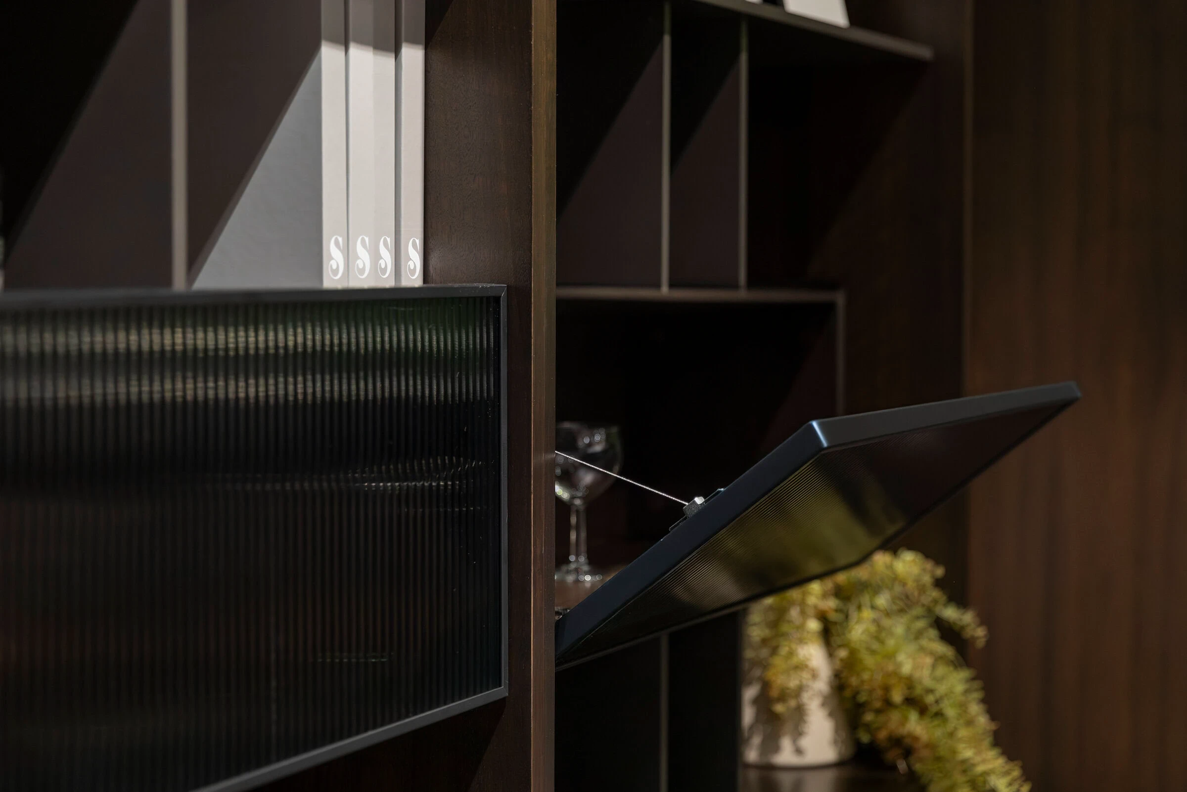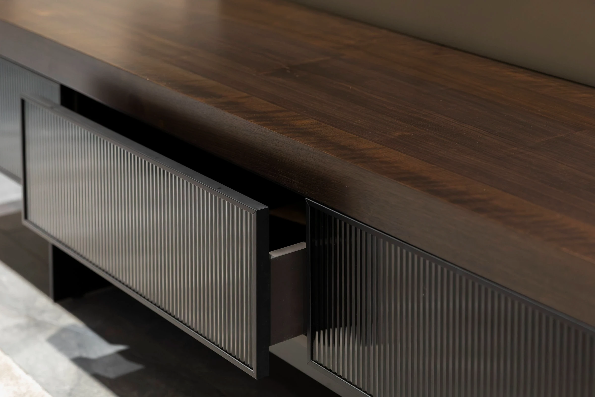 Hiro TV Ünitesi, doğal ceviz kaplamalı gövdesi ve nervürlü cam kapak detaylarıyla yaşam alanına sıcaklık ve yapısal çekicilik kazandırır. Fonksiyonel modülleriyle hem akıllı depolama imkânı sunar hem de zamansız bir modern stil oluşturur.