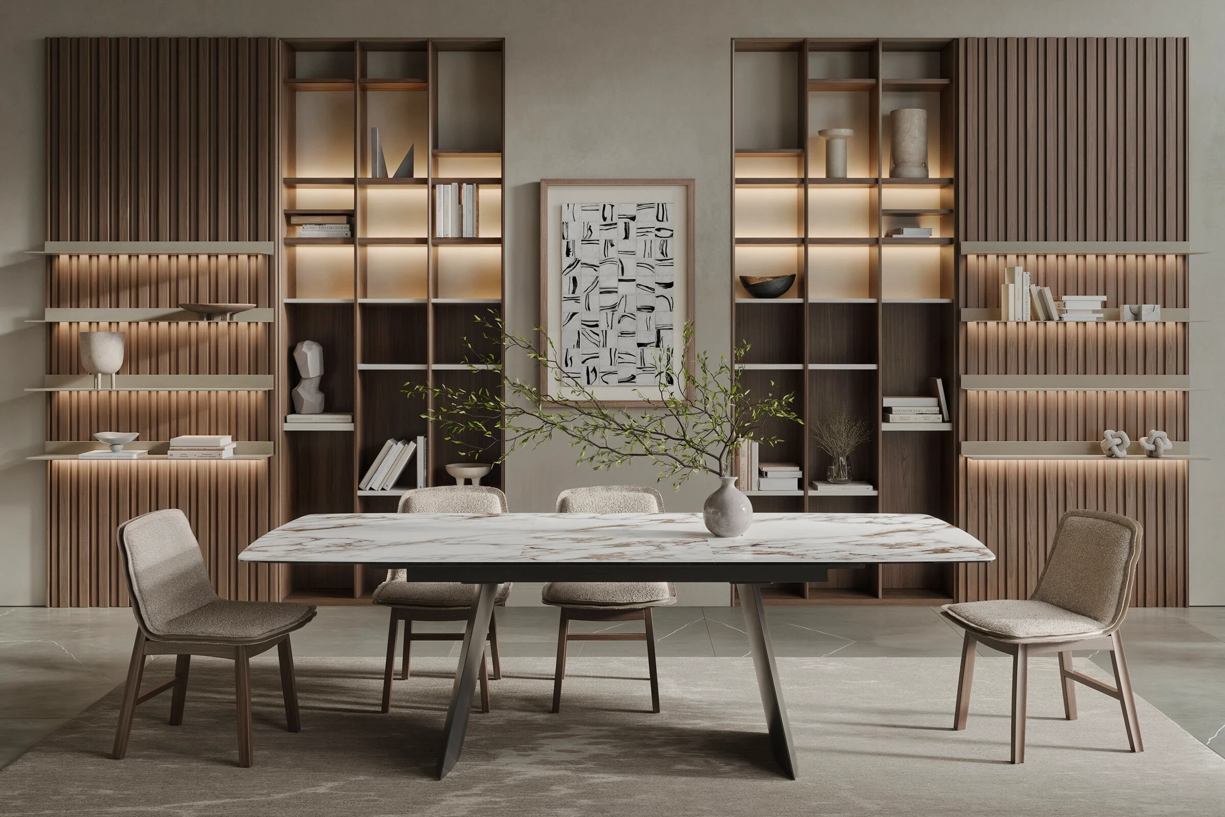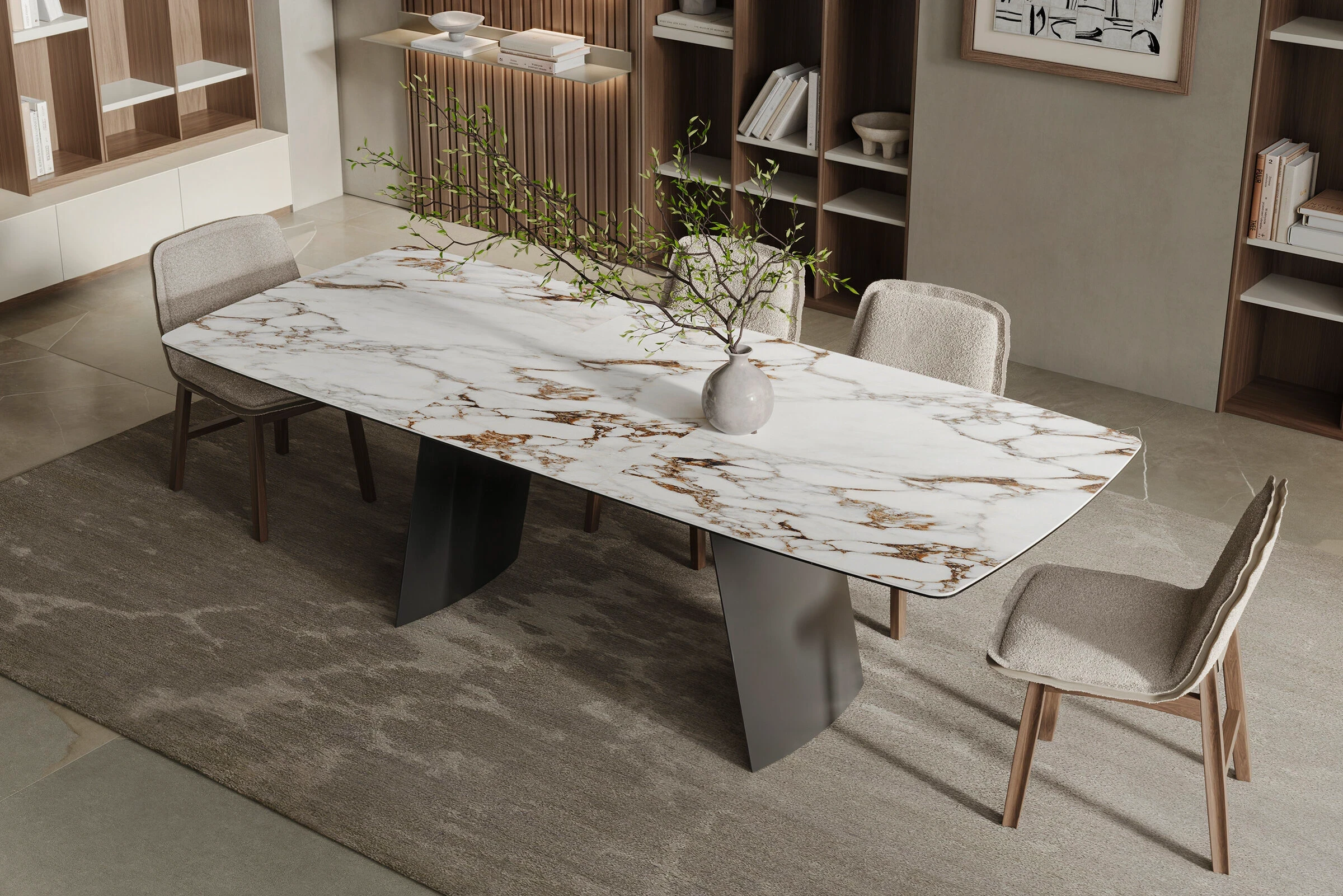Ortadan genişleyen seramik tablalı Tetra masa hem zarafet hem de pratiklik sunar. Ortadan genişleyen mekanizma masanın kolayca genişletilmesini sağlayarak ekstra alan sağlar.