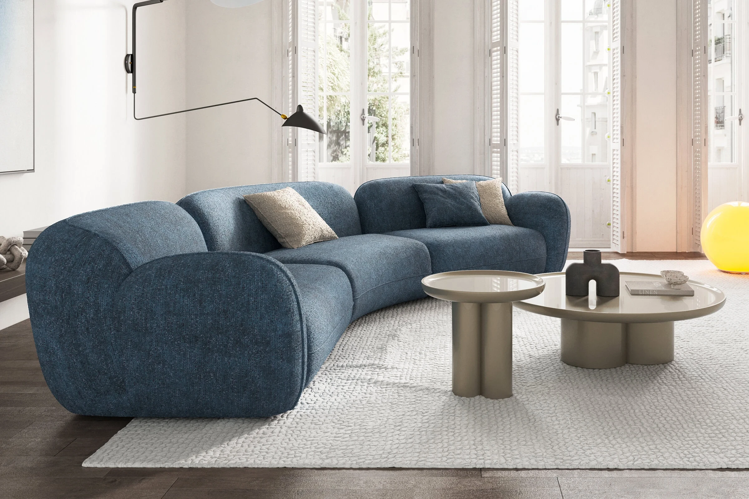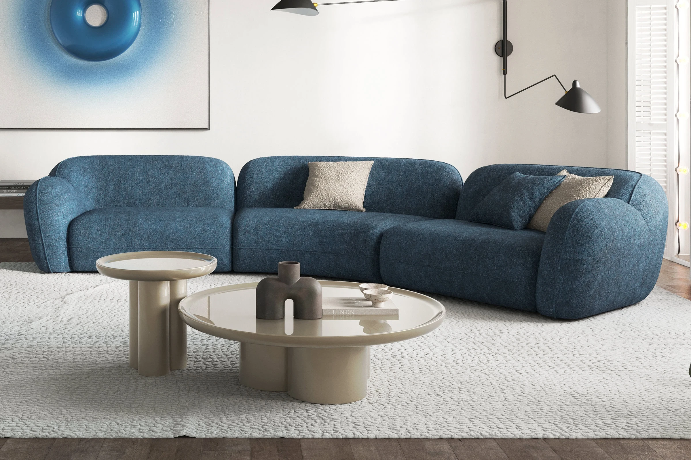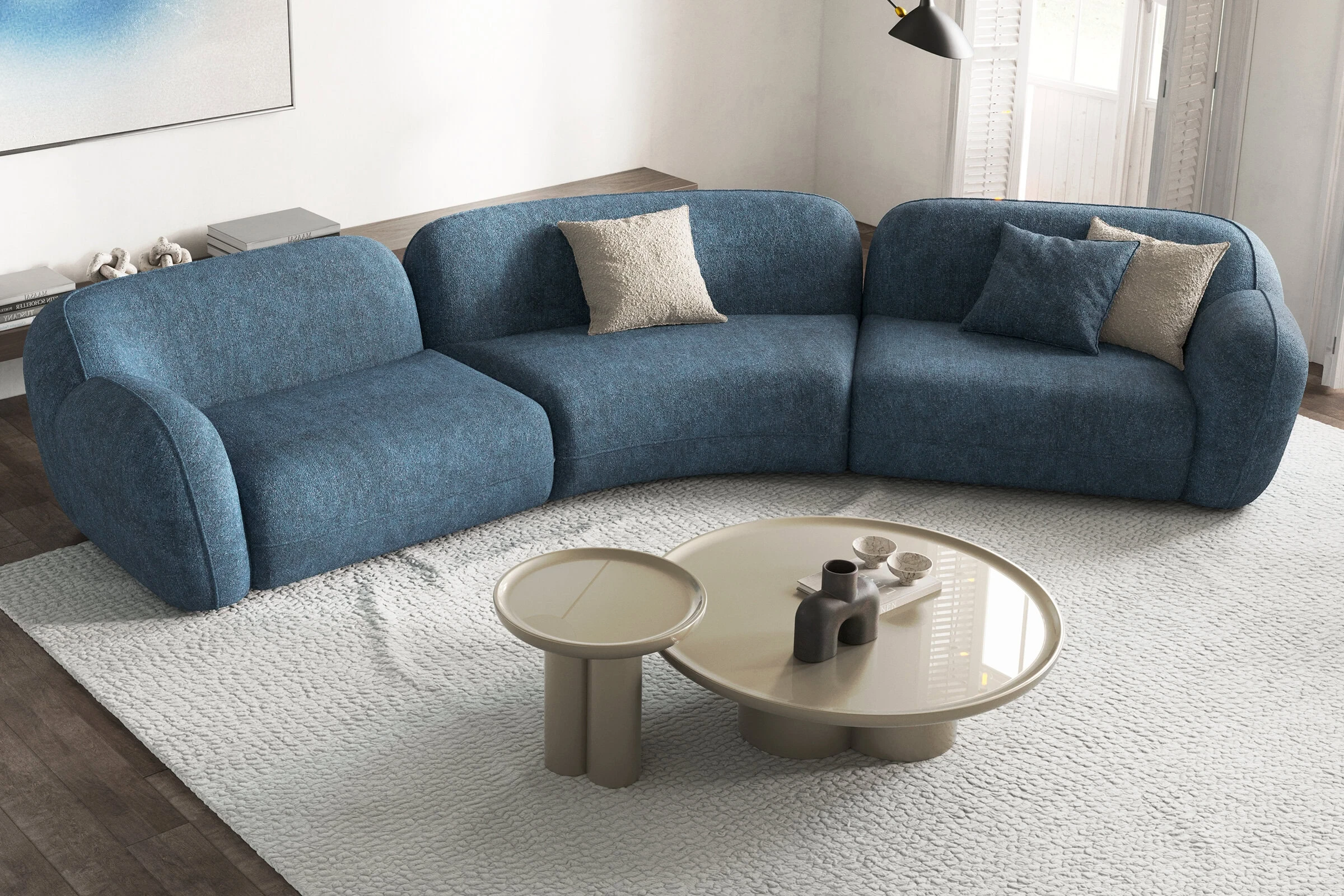 Birbiriyle bütünleşen dairesel ayak yapısı, hem estetiği hem de dengeyi bir arada sunarak göz alıcı bir tasarım oluşturuyor. Özgün ve modern çizgilere sahip bu sehpa takımı, yaşam alanlarınıza zarif bir dokunuş katmak isteyenler için ideal bir seçim. Göz alıcı boyası ve dikkat çekici tasarımıyla Tridente, mekanınıza sofistike bir görünüm kazandırıyor.